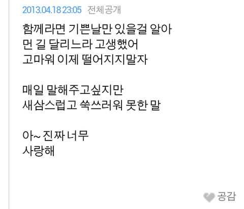 우연히 옛생각이나 여자의 싸이를 들어가봤는대 이런 다이어리글이 있더라요.