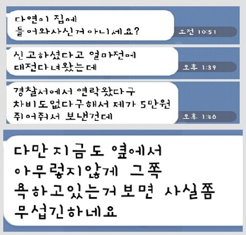 거기에 제가 무슨 경찰에 신고를해서 대전경찰서 가야한다며 돈도빌리고 회사도빠지고 그랬다며
