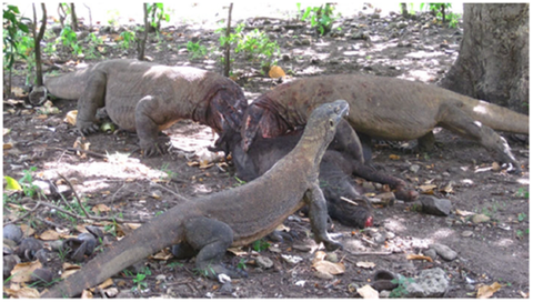생긴게 공룡에 유사해서 공룡의 후손이라고 불리지만 실은 코모도는 뱀쪽에 가깝고 공룡은 새에 가까움.