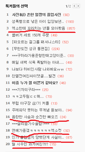 팬카페도 아닌 네이트판에 톡커들의 선택 20개 중에 5개씩이나 올라와있다는게 조카 어이없다
