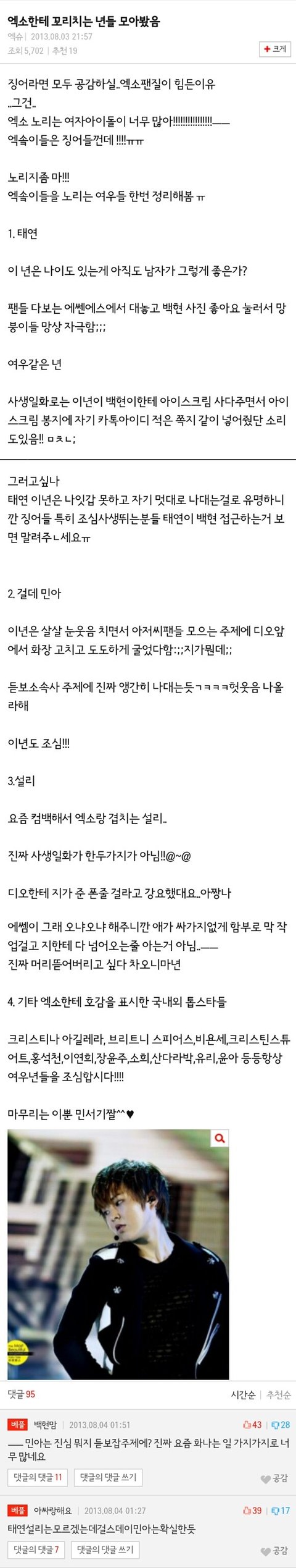 태연하고 설리 민아 까도 욕먹을판에 크리스티나 아길레라, 브리트니 스피어스,비욘세,크리스틴스튜어트ㅋㅋㅋㅋ 얘네들은 왜갖다붙임??ㅋㅋㅋㅋㅋㅋㅋ