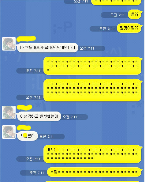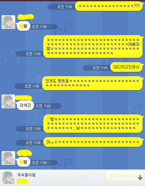 오늘밤을새고 친구랑 톡을하다갘ㅋㅋ