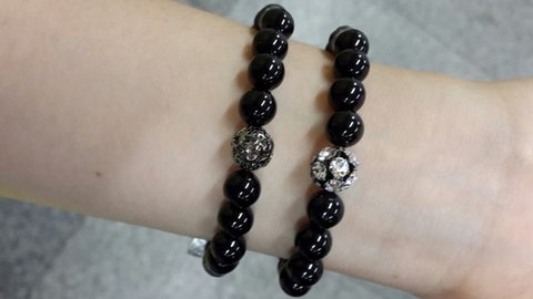 제팔찌에는 좀 더 포인트로 스와로브스키 볼을 넣어서