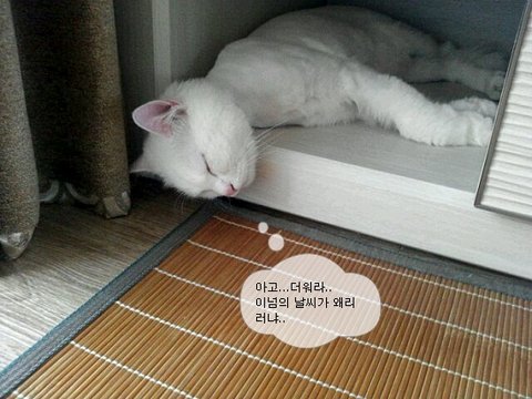 땀삐질거리며 하루종일 자다가..저희집 냥이