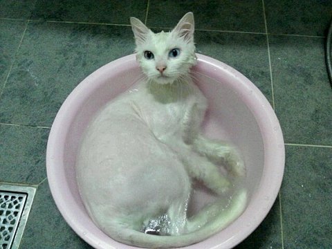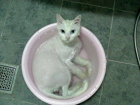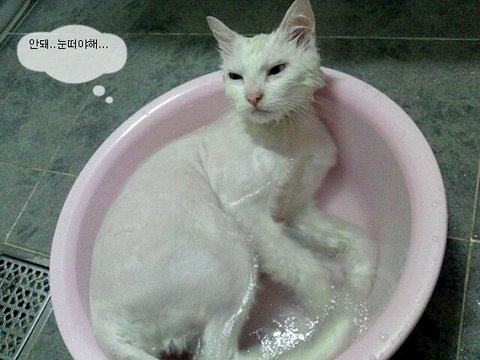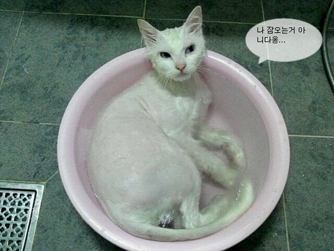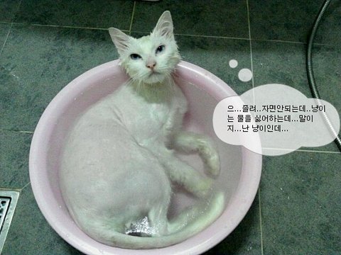 냥이들은 보통 물을 싫어하는데~ 저희집 냥이도 예외는 아니구요^^