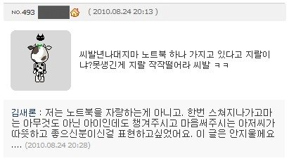 새론이는 유승호처럼 개념이 잘 박힌거같음 원빈이 노트북사줬을때 악플러한테 욕먹어도 침착하게 대응함 어린데 참 기특함