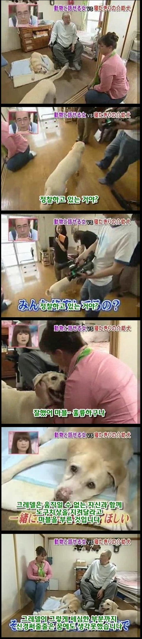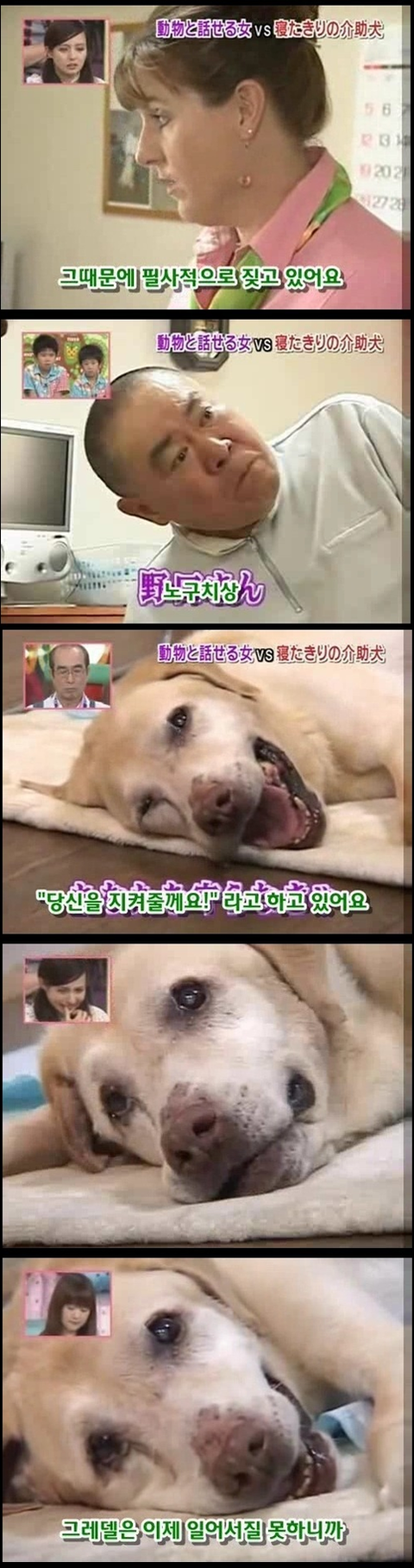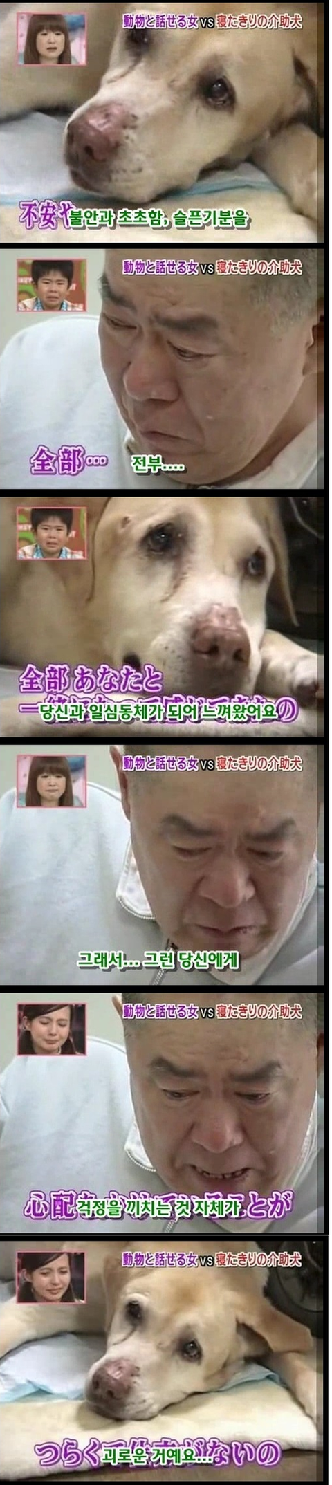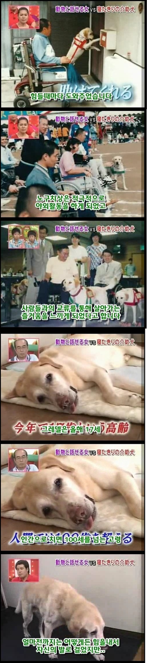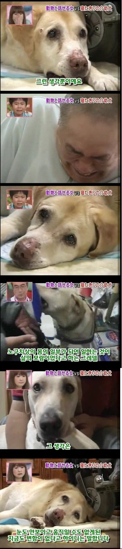 마지막 사진에 눈물이 그냥 터져버림... 저 개의 심정이 격어보지는 않았지만 너무 이해가가는게.. 평생을 옆에서 간호하고 지켜줬는데 그게 당연한거고 내 삶이였는데.... 언젠가부터 그 일을 못하게되고 죽음은 다가오고.. 더 이상 지켜주지 못한다는 생각에 얼마나 불안할지.. 개가 사람보다 낫다라는 말은 이럴때 쓰는건가봄