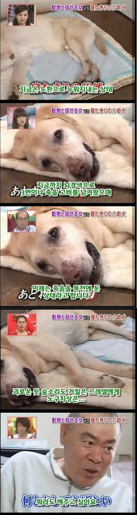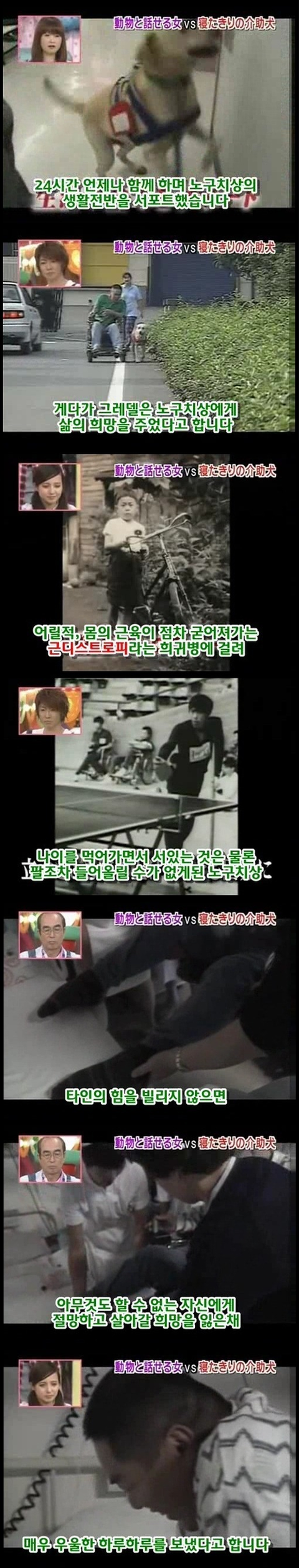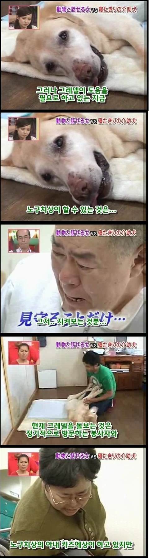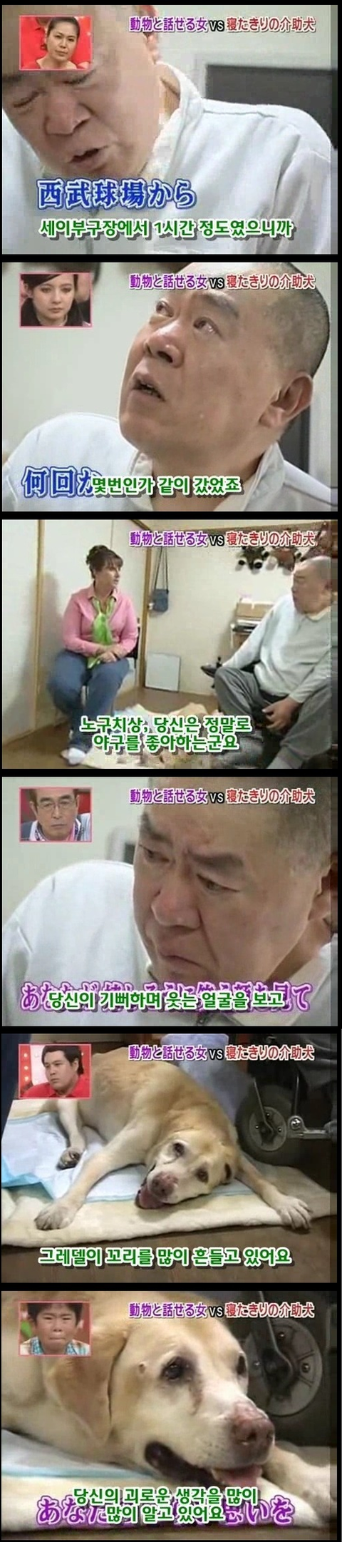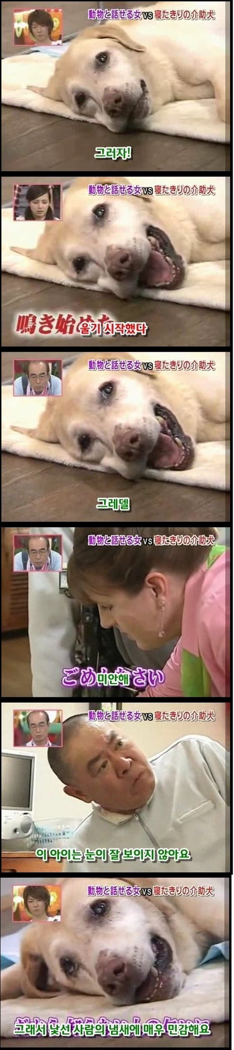 마지막 사진에 눈물이 그냥 터져버림... 저 개의 심정이 격어보지는 않았지만 너무 이해가가는게.. 평생을 옆에서 간호하고 지켜줬는데 그게 당연한거고 내 삶이였는데.... 언젠가부터 그 일을 못하게되고 죽음은 다가오고.. 더 이상 지켜주지 못한다는 생각에 얼마나 불안할지.. 개가 사람보다 낫다라는 말은 이럴때 쓰는건가봄