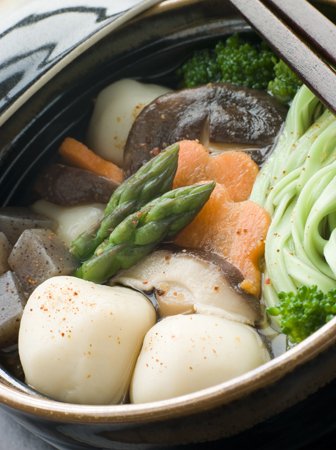 오리고기, 가지, 표고버섯, 부추, 우엉