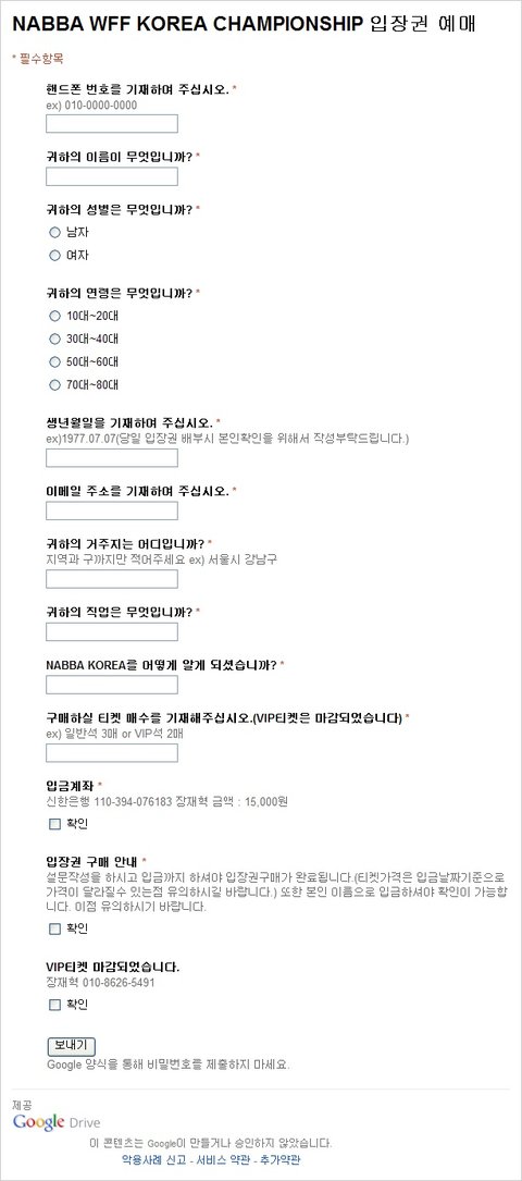 나바코리아 대회관람 입장권을 홈페이지에서 미리 구매할 경우