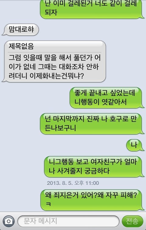 그래놓고하는말이 그때얘기하지 왜 이제서 말하냐고..ㅋㅋㅋㅋㅋㅋ진짜 어이없어섴ㅋㅋ