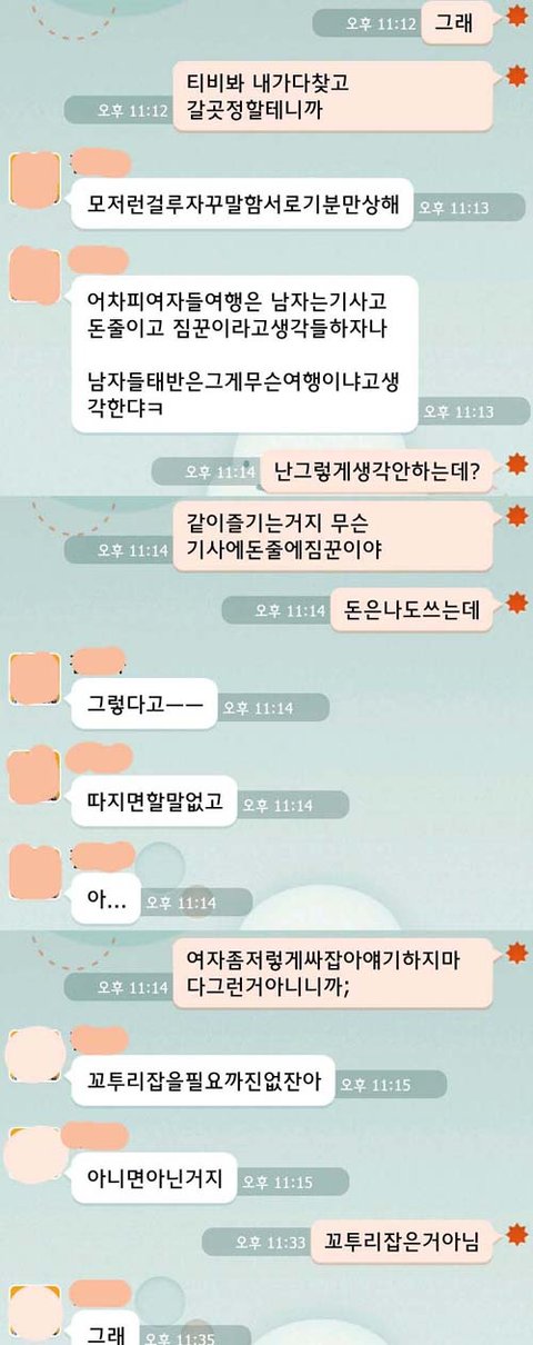 모처럼 기분 좋게 떠나는건데 저런 반응이면 어느 여자가 기분이 좋습니까?