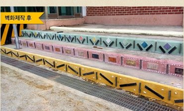 기와 등의 조각을 담장에 붙여 제작하는 친환경적인 벽화제작을 선택했다고 해요..