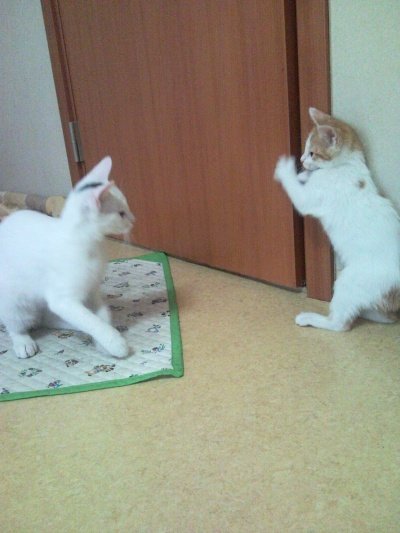 금새 친해져 꼬리 잡기 놀이도 합니다. (좌 : 뽀리, 우 : 콩이)