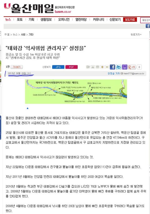 그리고 제가 알기로는 태화강의 경우 물놀이와 낚시가 금지된 지역으로 알고 있으나