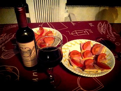 숙소에 돌아와서는 낮에 장 봐놨던 재료들로 어설프게 카나페를 만들어서 와인이랑 같이 먹었어요ㅋㅋ