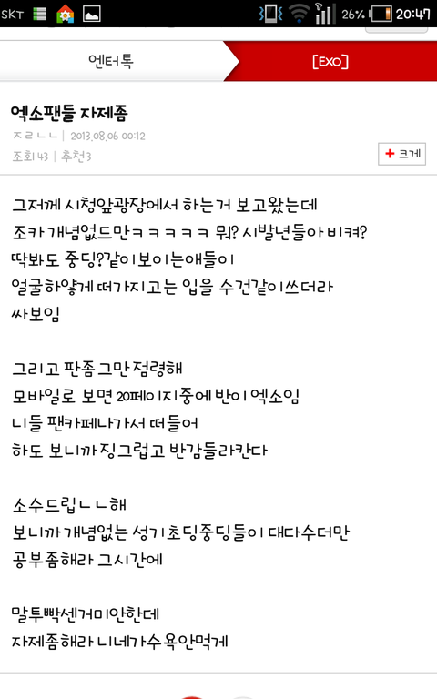 나진짜 궁금해서그러는데 엑소팬들 도대체 왜이러는거임? 진짜 개념을 밥말아먹었나봐;;