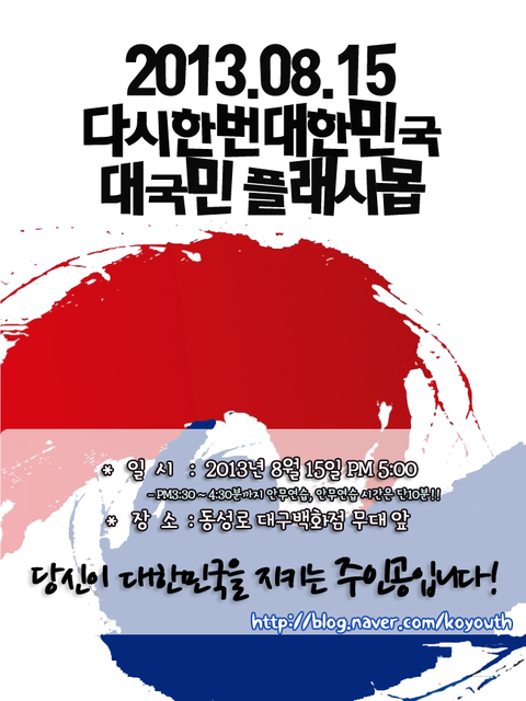 안녕하세요 ^^ 2013 '다시한번 대한민국' 플래시몹 기획중인 사람입니다.