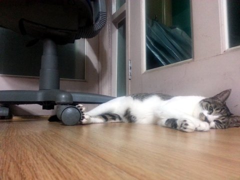 좀 뛰어 놀았더니 힘들다옹 돼냥이는 아니다옹
