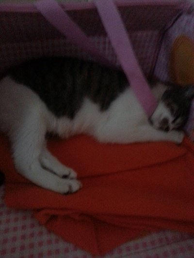 왜 저러고 자는지 이유 모름.. 이동장끈 목에 메고 편안히 자는중