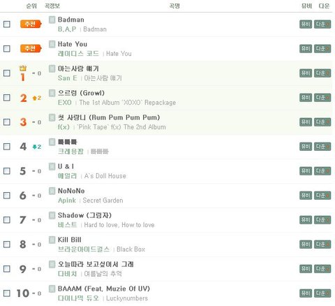 엑소 멜론 2위
