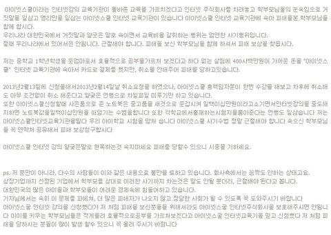 웹상에서 돌고 있는 아이넷스쿨 피해 사례들 간략하게 모아봤습니다.