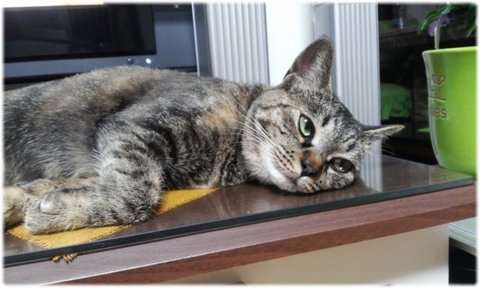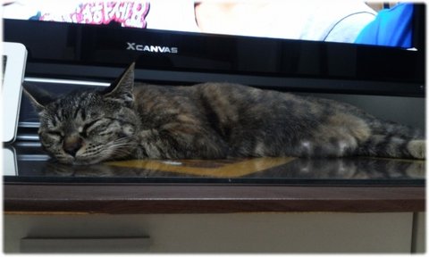 그러다 더워지면 바닥에, 대나무 돗자리에, 소파에, 탁자에 자리를 옮겨가며 더위를 식힌답니다.