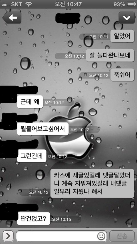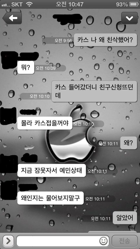 그러더니 결국 카스 친삭하더라구요 지네들 친구들이랑은 서로 주고받고 잘하면서ㅡㅡ
