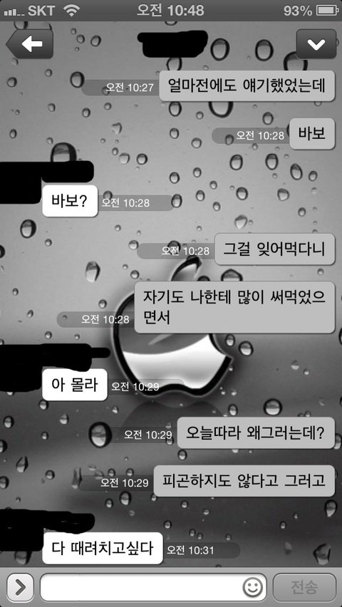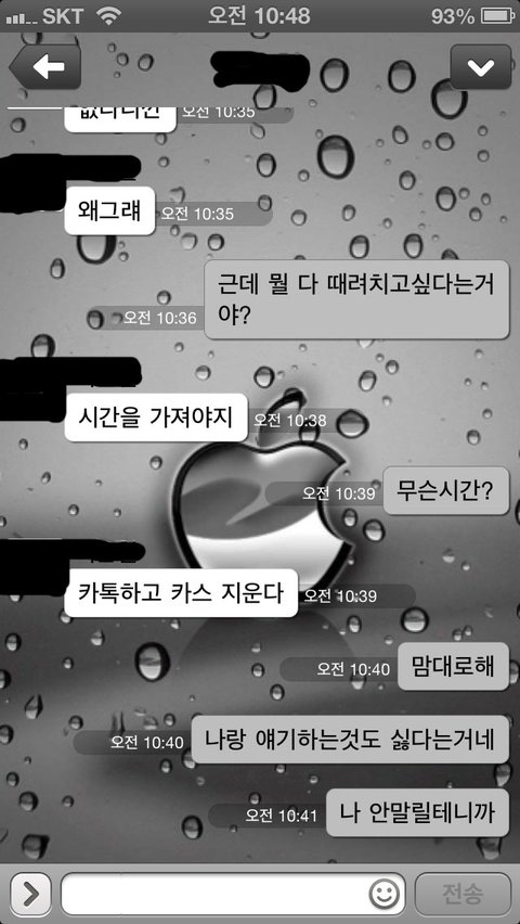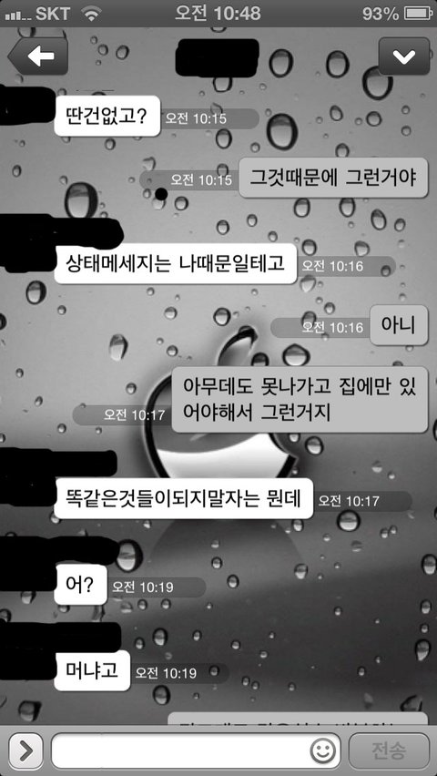 제가 써놓은 상테메시지보고 막 무슨뜻이냐고 나보고한소리냐고 하질않나