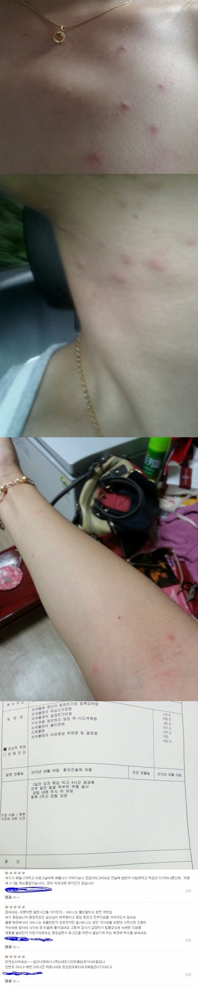 그날 오후에 병원에서 진단을 받았고, 진단결과는 바이러스성 장염. 상세불명 원인의 알레르기성 접촉피부염이였습니다.