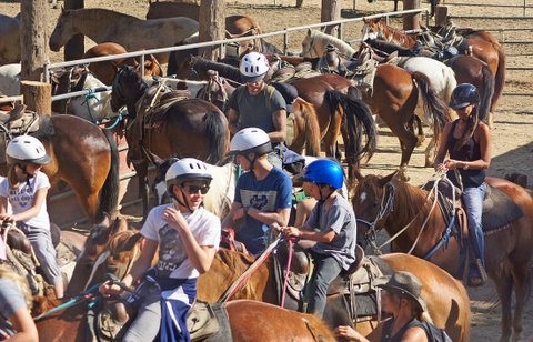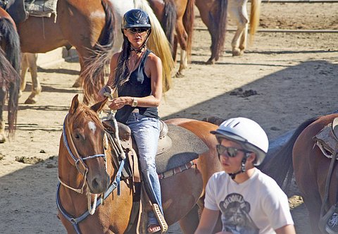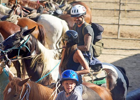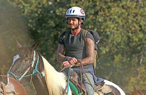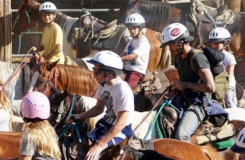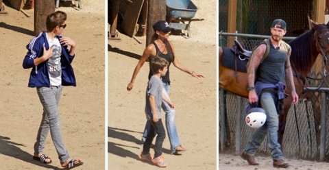 막내딸은 너무 어려서 빼고 아들 셋과 함께 승마를 하러 나온 베컴 부부