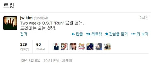 개인 트위터에 드라마와 음원이 공개되었다는걸 밝히고 ㅎㅎ