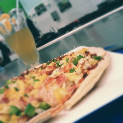2) 학교에서 만든 햄과 파인애플 야채 피자에요 ^^ 뒤에있는 음료는 과일 펀츠고요^^