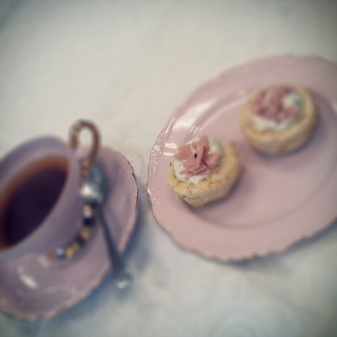 10) 마지막으로는 허브 스콘이에여 :) 스콘 위에다 소금으로 약간 간된 요거트와 햄을 올렸어여 :)