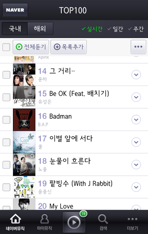 네이버뮤직도 스밍되나요??? 정기이용중인게 이거뿐이라서요... 네이버는 지금 16 위네요 ㅎ..ㅎ..