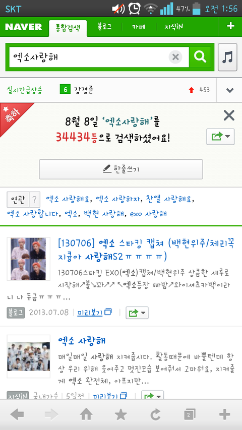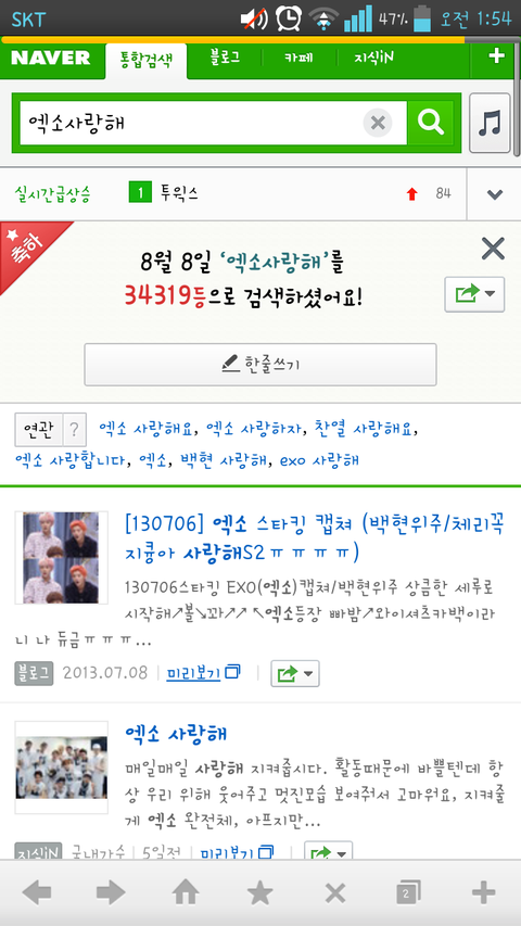 엑소개념팬분들때매 점점 실검이올라가고있어여~~