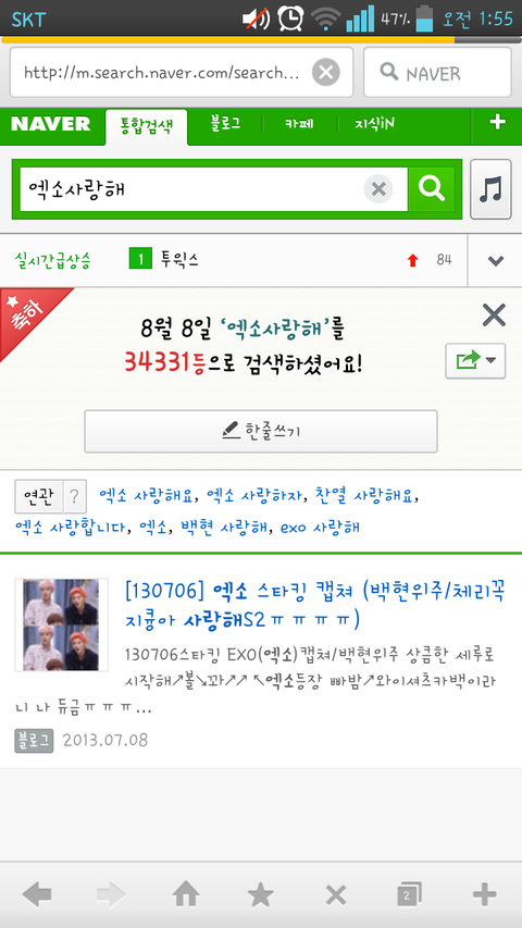 쨌든 엑소 실검올랐을때 엄청 기뻐했다던데 계속 네@버에 '엑소사랑해'라고 쳐서 번호에관한글도 못뜨게 하고 엑소한번만 더 기쁘게 해주는거 어떨까여