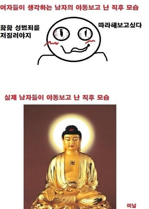 그러니깐 설명을 굳이 하자면.. 남자들은 야동을 보면서 주로 자위행위를 하기 때문에 자위행위를 통해서 성욕을 분출하고나면 성적욕구가 급격히 떨어지게 됩니다... 그래서 부처가 되죠 ㅎㅎ..... 끝