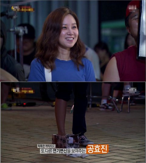 주군의 태양 촬영현장에서 꽃 운동화 한쪽만 신은 공효진!