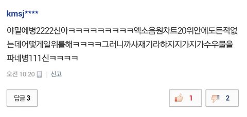 일단 엑소를 어이없는 이유로 음원 사재기라고 몰고가길래 누구의 팬인지 알아내기위해 이분이 쓴 글을 탐구해보겠음 사재기 뜻도 모르는것보니까 초딩일것이 분명함