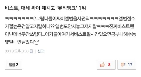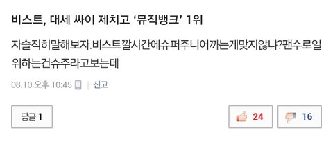 +이때 일위후보가 싸이랑 비스트였음 이 댓글은 비스트 쉴드치려고 단 댓글 = 비스트팬