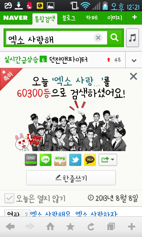 초록검색창에엑소사랑해검색하는거