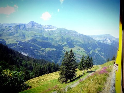 융프라우 요흐에서 점점 내려오니 다시 열차 밖으로 푸른 잔디밭이 펼쳐지네요ㅎ
