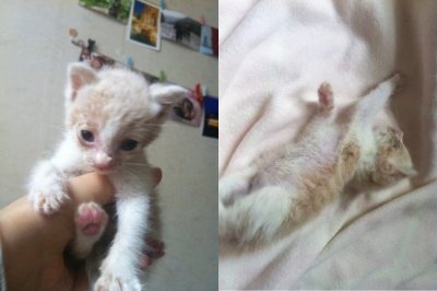 발견당시 오줌범벅, 똥부스러기 범벅, 눈곱과 고름으로 한쪽 눈도 못뜨던 애기를