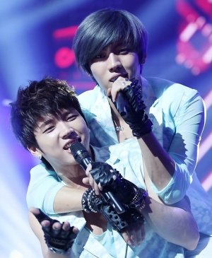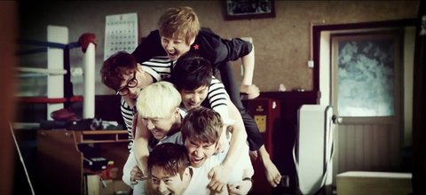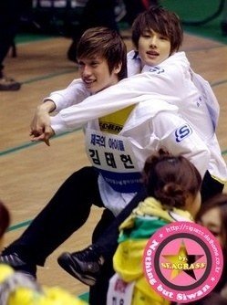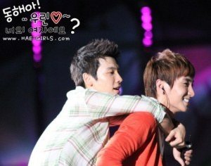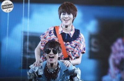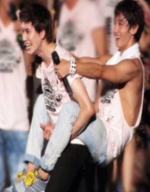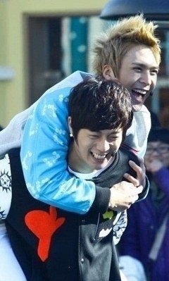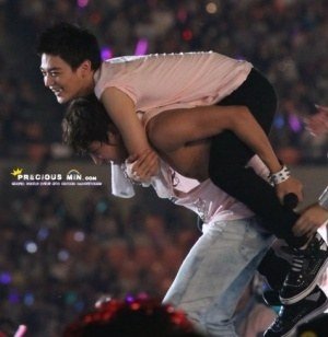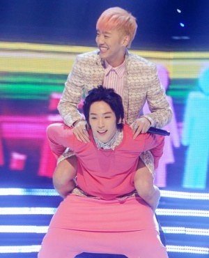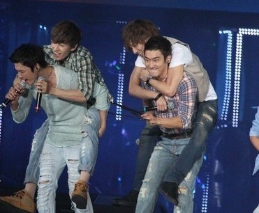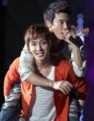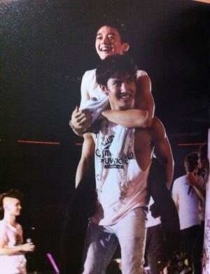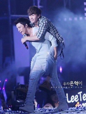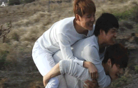 업혀서 신나 보이는 아이돌들