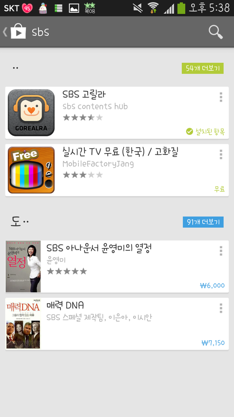일단!플레이스토어에가서 검색창에 sbs라고치면