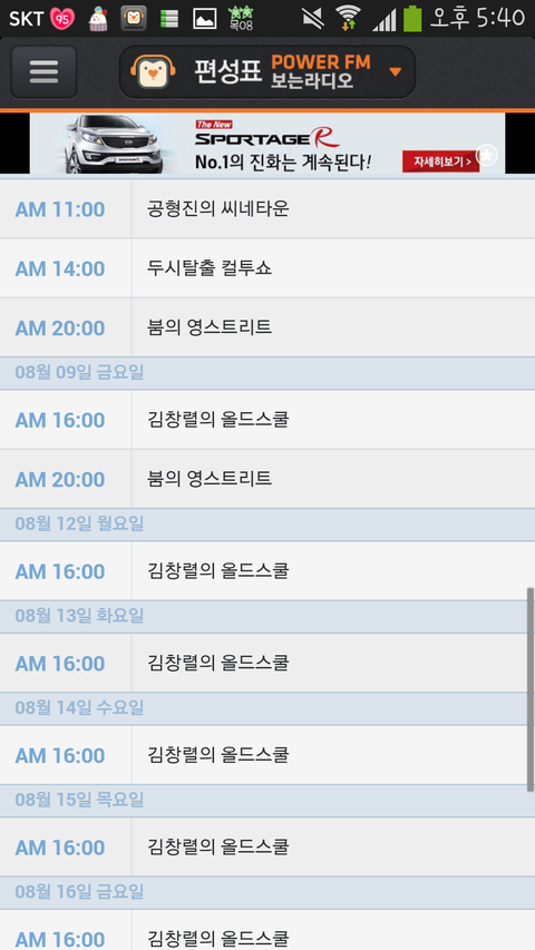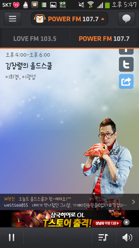 고릴라어플에 들어가서 러브fm 에서 파워fm으로 바꿔주세요!