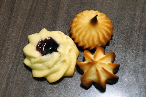 블루베리 쨈을 이용한 쨈쿠키, 전통모양의 상투과자, 버터쿠키입니다