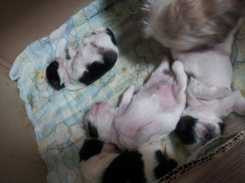 맨 오른쪽에 있는 녀석이 자는 형제들 비집고 이동하는 모습이예요 ㅎㅎ