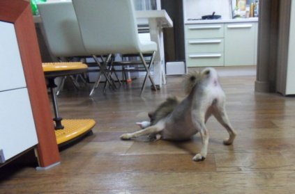 한쪽다리는 쭉~뻗고 다른한쪽 다리는 접은상태로 부비부비~~